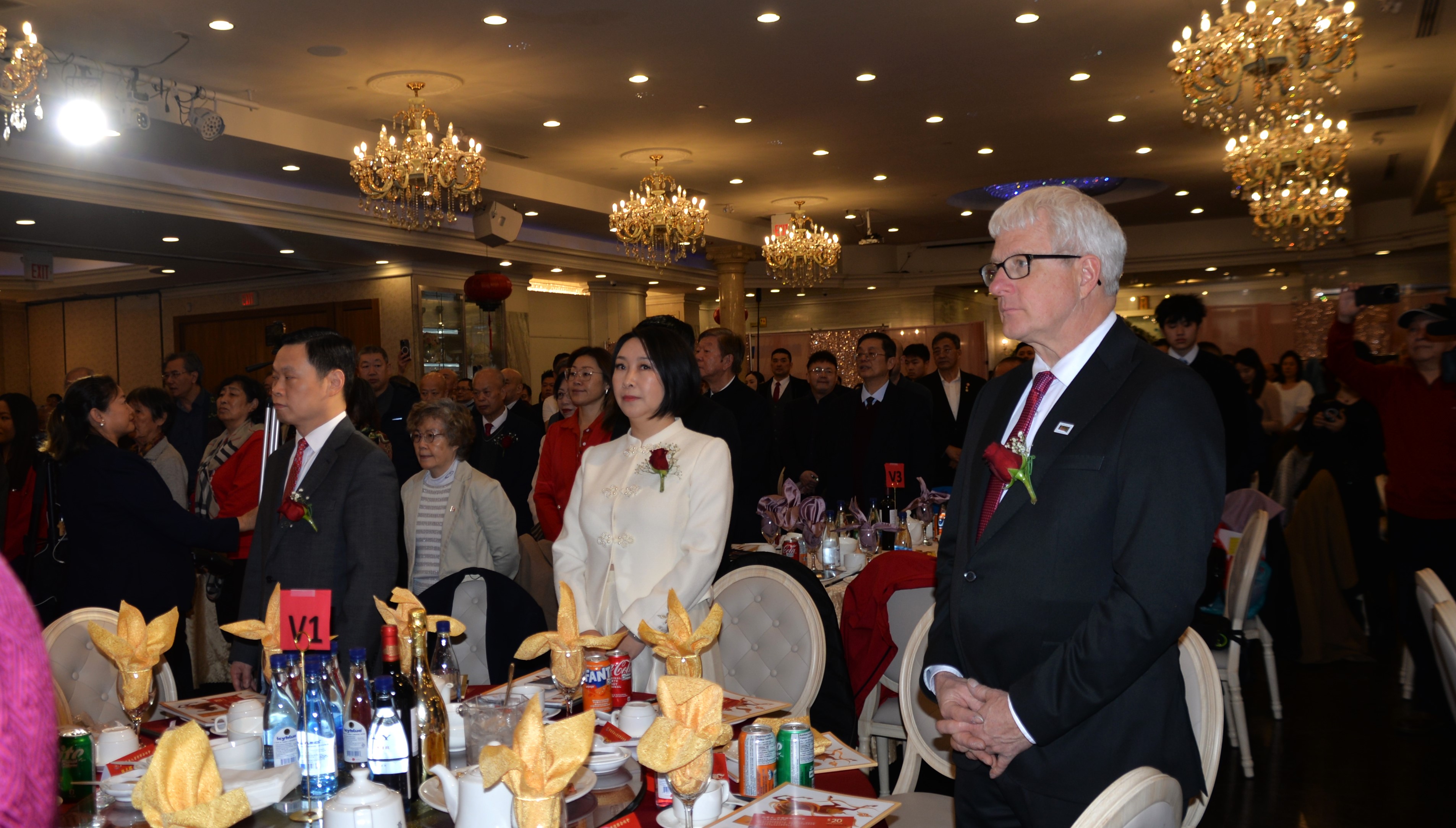 中国驻多伦多总领馆副总领事程洪波出席典礼并致辞。联邦国会议员叶嘉莉、省议员白必勤、列治文山市长David West、万锦市副市长陈国治,列治文山副市长陈志辉,万锦区议员李国贤,万锦区议员何胡景,多伦多议员高雪丽、麦智谋和万高利,万锦市议员杨,列治文山市议员崔冰辉,以及其他市级政要及侨界代表应邀出席;会上还宣读了加拿大联邦国会议员陈圣源、多伦多市长邹至蕙、中国国侨办,中国侨联,北京市侨联,云南省侨办,云南省侨联,山西省侨办,海南省侨办发来贺信。现场气氛庄重热烈,洋溢着团结奋进、共迎新程的节日氛围。