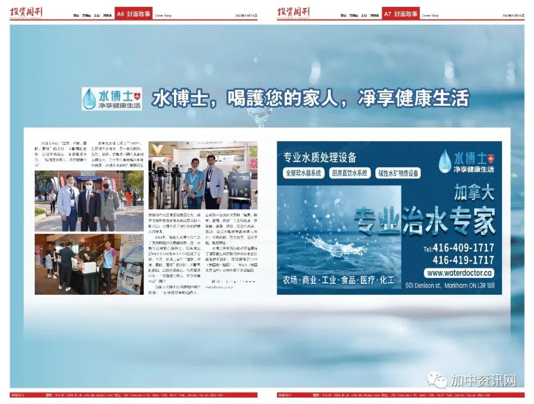 加拿大水博士成立于1982年,注册地在多伦多。是一家集科研,设计,制造,销售为一体的水处理设备公司,三十年的专业专注和技术积累,迅速在水处理行业特别是家商用净水设备领域发展壮大。随着市场对家商用净水产品需求的不断增加,水博士为了更好地服务广大消费者,多年来一直不断创新和稳健发展。