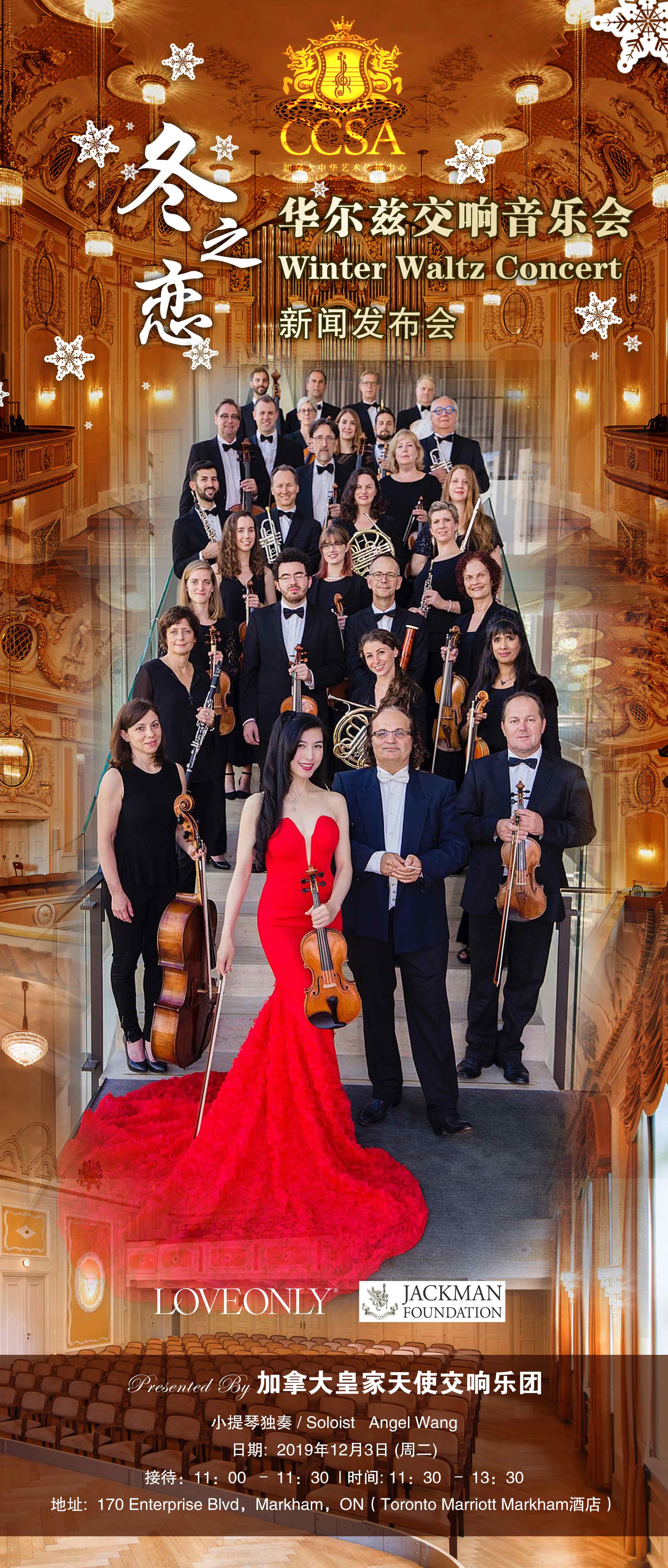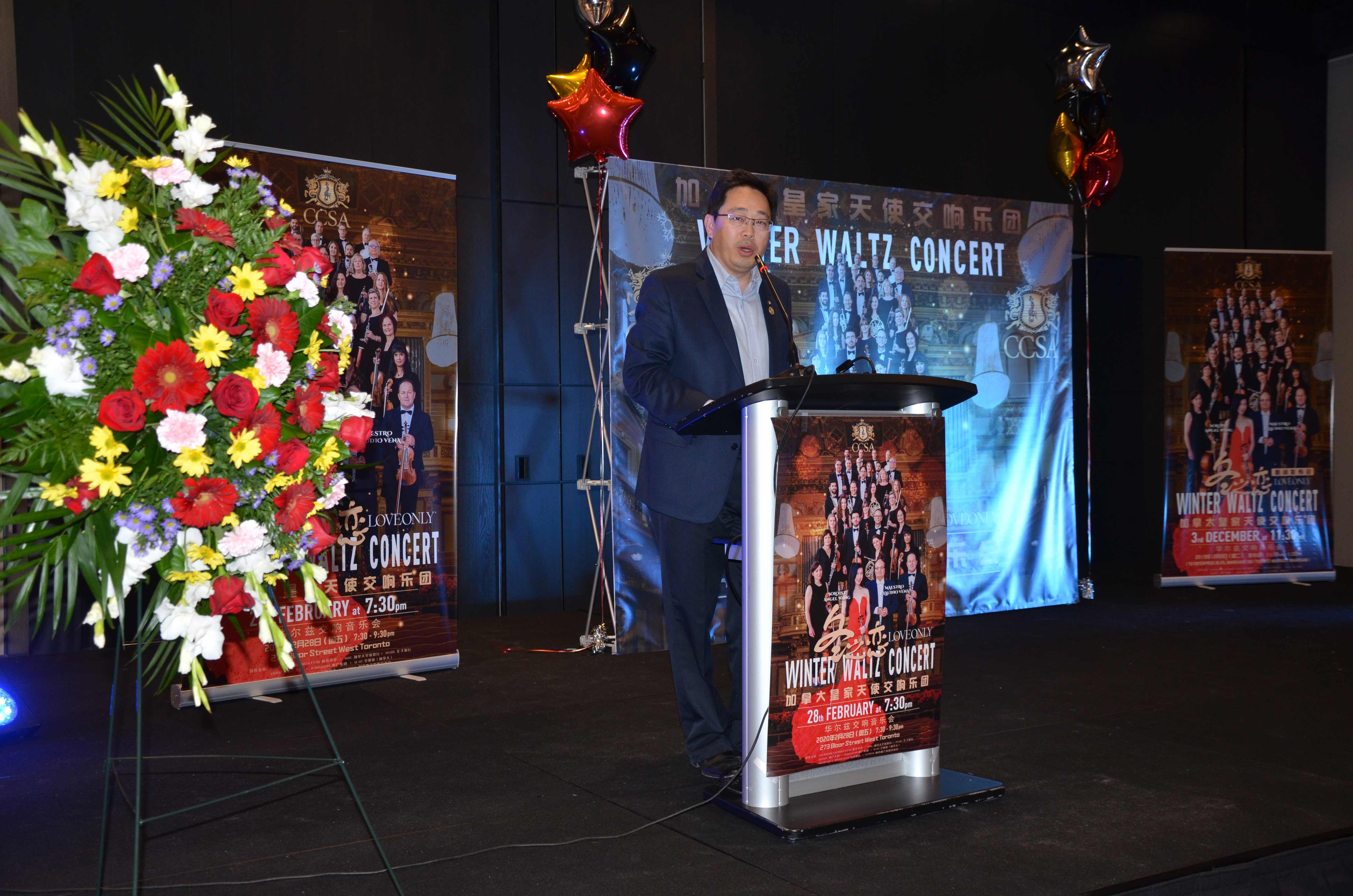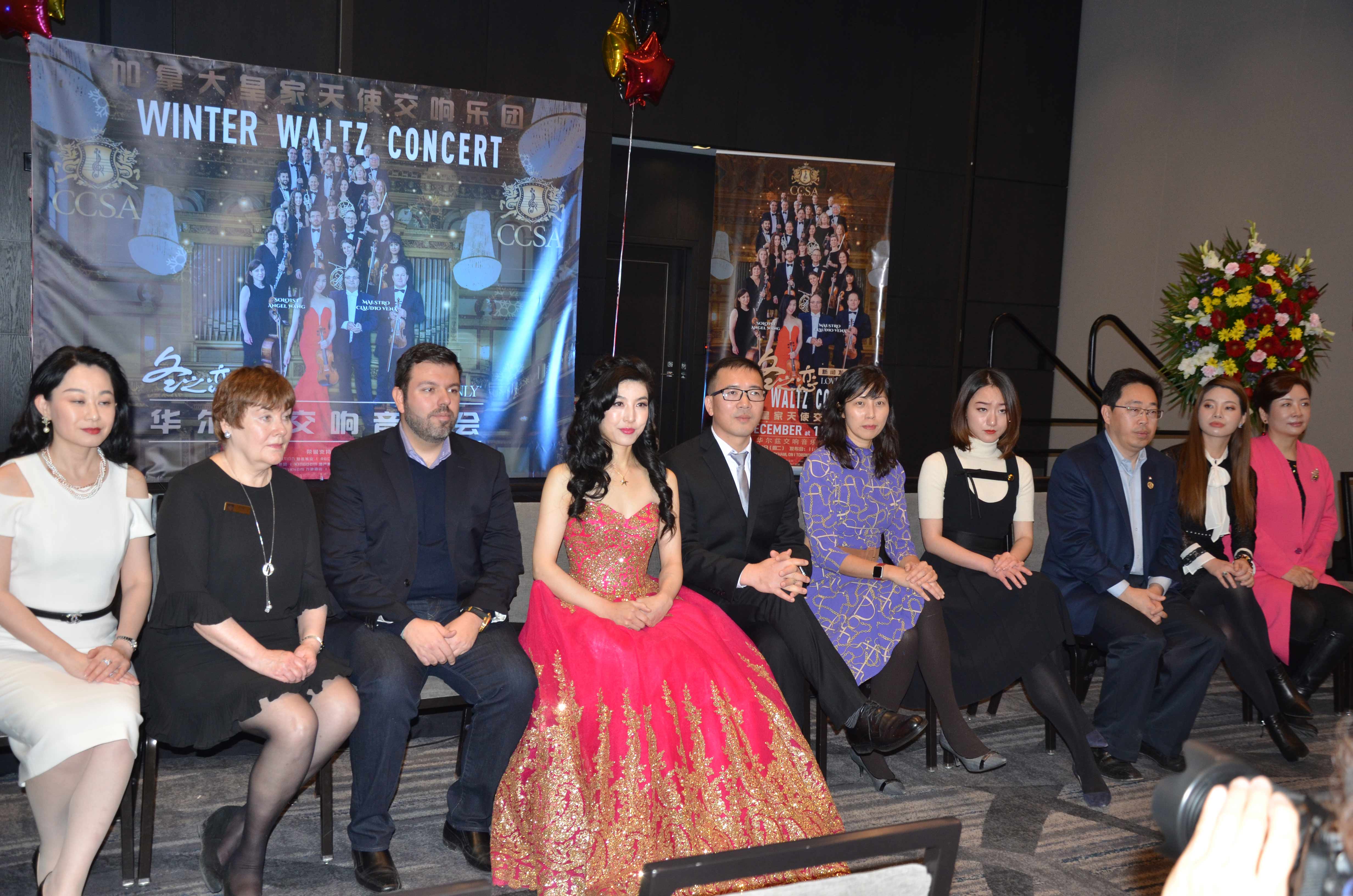 本届音乐会是由CCSA加拿大皇家天使交响乐团主办,并得到Loveonly Diamond 担任主题赞助。出席新闻发布会的有多伦多市议员詹嘉礼,主题赞助 Loveonly Diamond CEO江中杰,荣誉支持兼钻石赞助Jackman Foundation 慈善基金代表Laura Mayne,荣誉支持兼白金赞助Kingdom 地产集团经理Zoe Liu和QJD 全聚德加拿大总经理高群,其它荣誉支持单位:RBC 加拿大皇家银行高级副总裁Rebecca Pang,HSBC 汇丰银行安省总裁代表Raymond Wu, CCSA荣誉顾问 – 加中地产投资总商会会长孙志峰、荣誉支持加拿大中华艺术协会CAAC会长 – 加拿大著名画家左晋,及加中地产投资总商会副会长张神树博士,加拿大著名书法家汪士华教授,医美形象管理顾问LA VITALITE MED SPA代表,赞助单位代表:慕思家私总经理Mercury、NiuNiu Roofing总裁Emma和加拿大儿童光播艺术团团长嘟嘟可美,以及CCSA加拿大皇家天使交响乐团成员、各社团及商会负责人、本地文化艺术界专业人士和媒体朋友近200人出席新闻发布会。