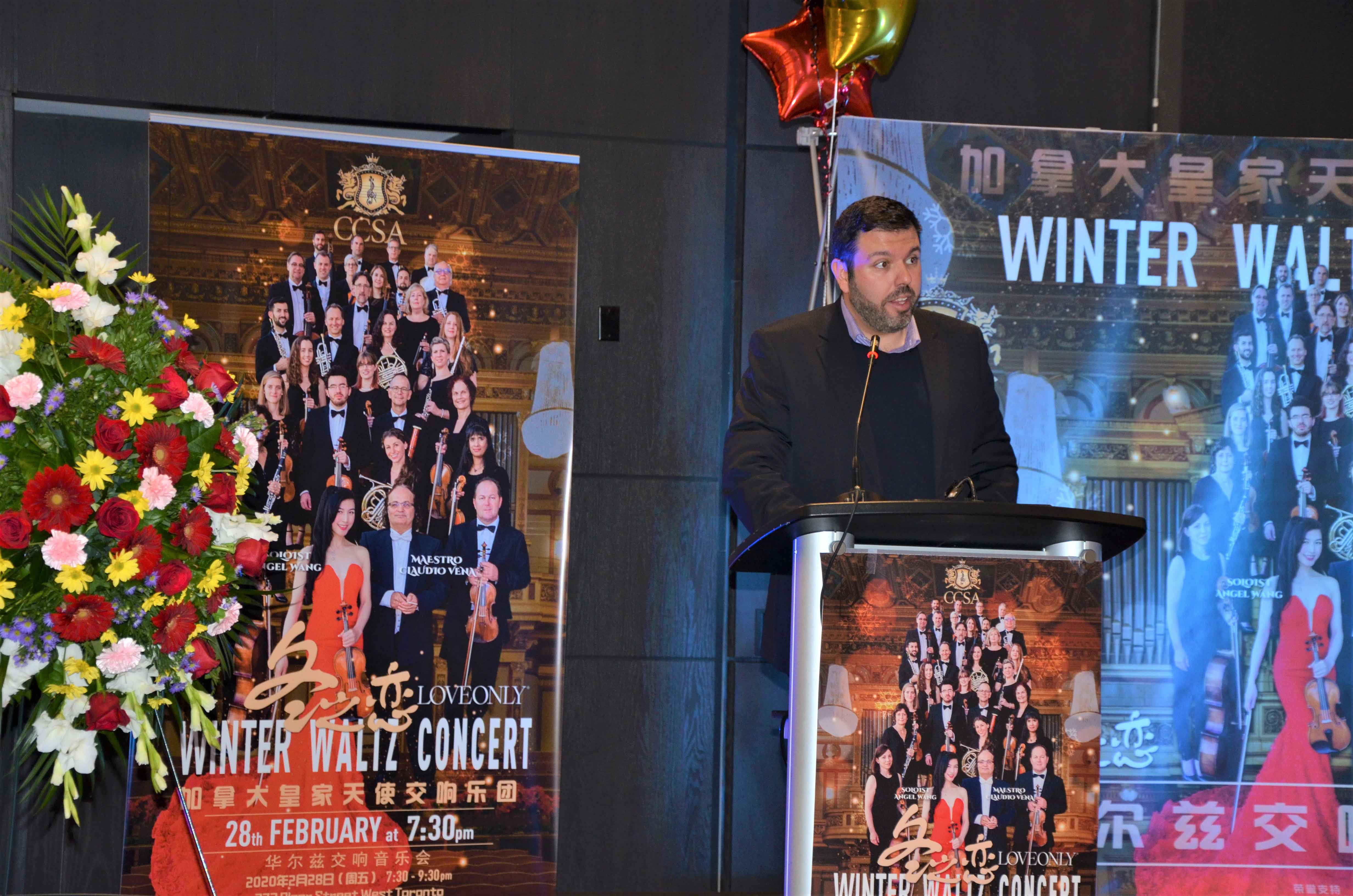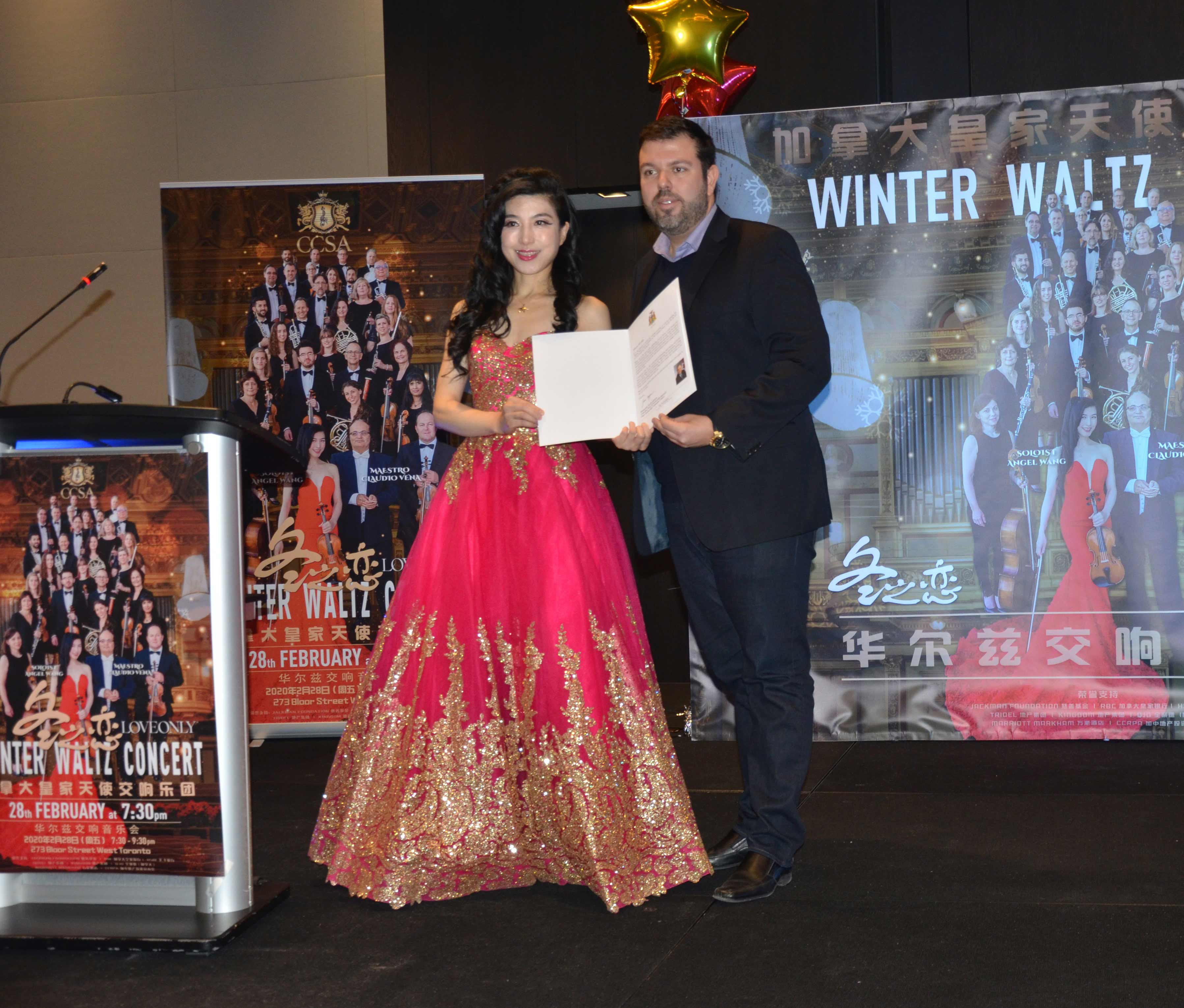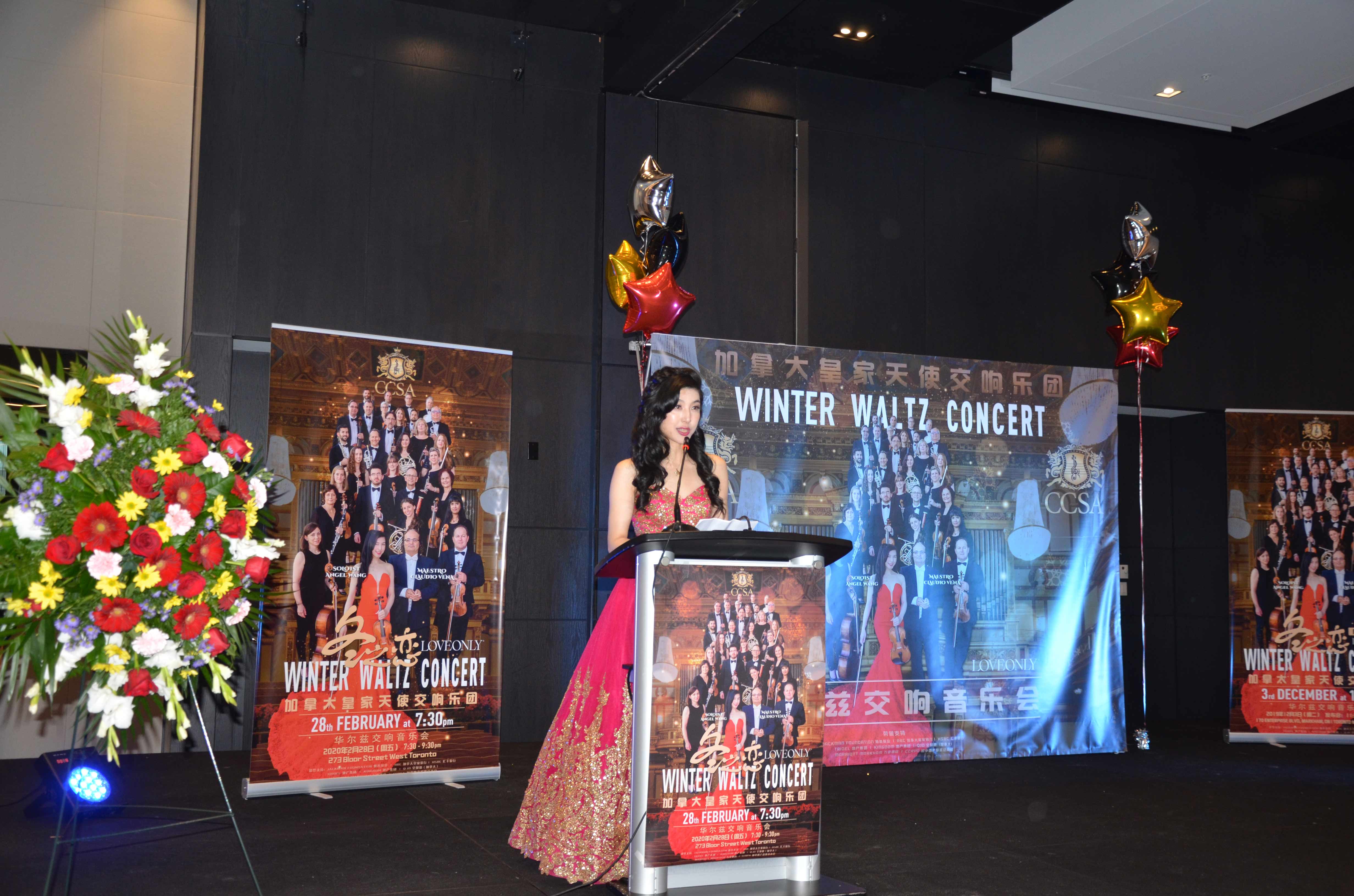 本届音乐会是由CCSA加拿大皇家天使交响乐团主办,并得到Loveonly Diamond 担任主题赞助。出席新闻发布会的有多伦多市议员詹嘉礼,主题赞助 Loveonly Diamond CEO江中杰,荣誉支持兼钻石赞助Jackman Foundation 慈善基金代表Laura Mayne,荣誉支持兼白金赞助Kingdom 地产集团经理Zoe Liu和QJD 全聚德加拿大总经理高群,其它荣誉支持单位:RBC 加拿大皇家银行高级副总裁Rebecca Pang,HSBC 汇丰银行安省总裁代表Raymond Wu, CCSA荣誉顾问 – 加中地产投资总商会会长孙志峰、荣誉支持加拿大中华艺术协会CAAC会长 – 加拿大著名画家左晋,及加中地产投资总商会副会长张神树博士,加拿大著名书法家汪士华教授,医美形象管理顾问LA VITALITE MED SPA代表,赞助单位代表:慕思家私总经理Mercury、NiuNiu Roofing总裁Emma和加拿大儿童光播艺术团团长嘟嘟可美,以及CCSA加拿大皇家天使交响乐团成员、各社团及商会负责人、本地文化艺术界专业人士和媒体朋友近200人出席新闻发布会。