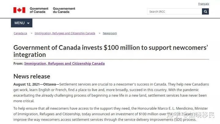 IRCC在声明中补充道:“这些定居于服务将探索如何更好地帮助新移民融入社区,并为新移民在后疫情复苏阶段提供更多支持。”