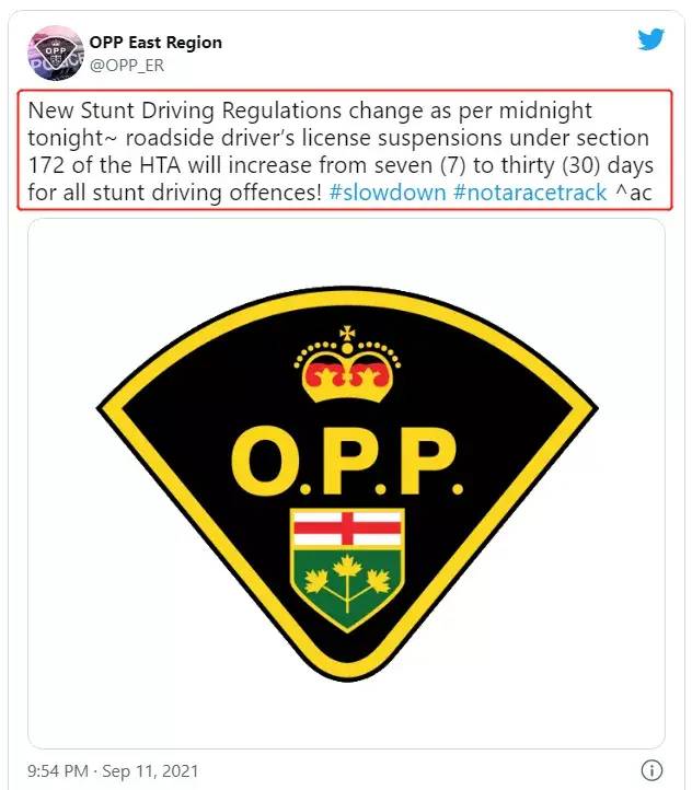 但是从9月12日开始,这个法规进一步加大了惩罚力度,根据《公路交通法》第 172 条和安大略省第 455/07 号条例,任何被发现涉及赛车和特技驾驶的人,一旦宣布被定罪,最低罚款将是 2,000 美元,最高可达 10,000 美元,甚至可能被吊销执照 30 天,然而此前是7天。