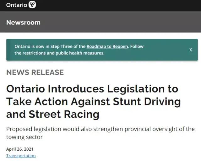 其实从今年开始,多伦多——安大略省正在不断地加大对超速、特技驾驶和其他交通违规行为的处罚力度。7月1日,安省就已经开始更新了危险驾驶法,根据安大略省人更安全法案(Moving Ontarias More Safely Act,简称:MOMS) 。该法案通过更长的执照吊销和车辆扣押来打击特技驾驶、激进驾驶和街头赛车。