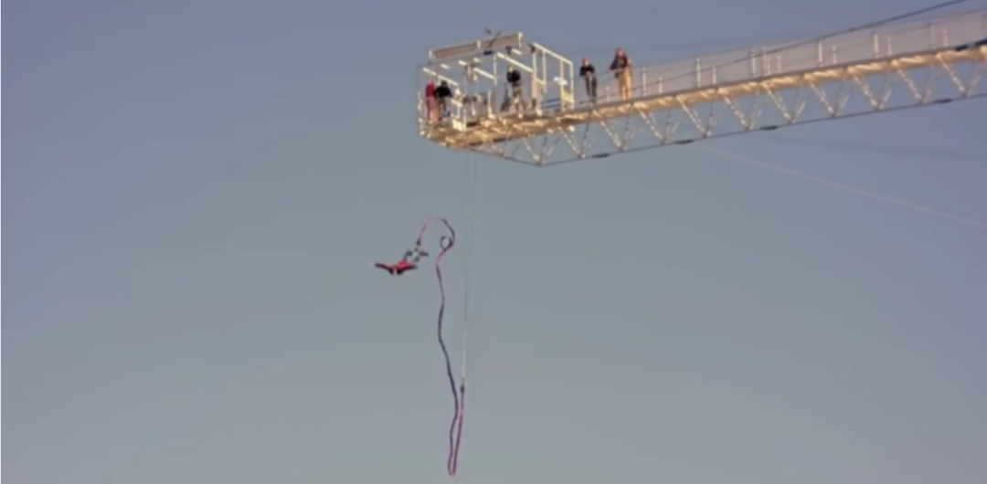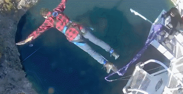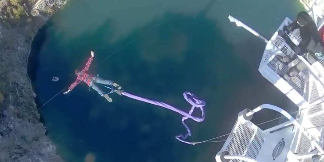 网上流传的一段视频显示了他从200英尺(60米)高的蹦极台上一跃而下的全过程。还真是,相当的疯狂…