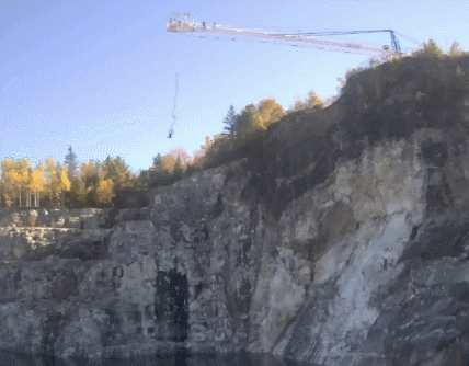 特鲁多挑战的是被称为“Great Canadian Bungee”的加拿大乃至北美最高的蹦极台,位于魁北克省的莫里森采石场。
