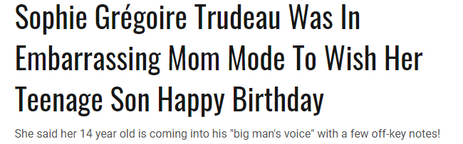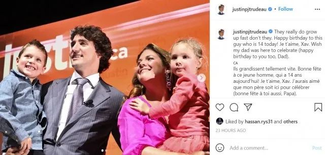 去年大儿子14岁生日的时候,特鲁多妻子苏菲就曾在Instagram上分享了一张她和大儿子的照片,还尽量以轻松的口吻写道: