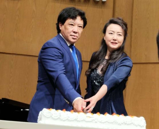 多伦多陈琳声乐艺术学院陈琳院长和著名男高音歌唱家张亚林一起切庆贺蛋糕