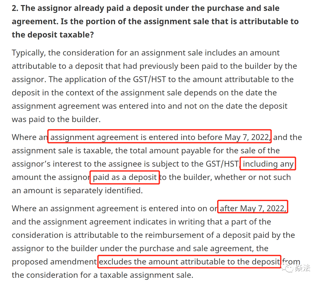 - 2022年5月8日其后签署的AAPS的,新政设定是:税基中排除已付开发商的定金部分,来计算征收出让合同AAPS的HST。