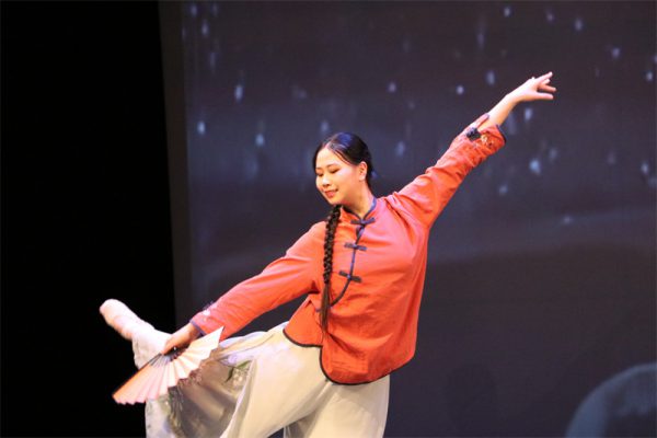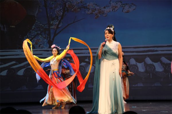 来自加拿大九洲艺术中心的张旭东、易仟晨、Anika Hou、Lily Yang、孙改迎、朱彦平、史松坤、马宁、Sophia Lian等一众优秀表演者带来了充满激情的《枫华梨园》戏曲联唱。演唱集合了多种中国传统戏曲剧目中的经典片段,演员们通过生动的唱腔、精湛的表演,以多样的戏曲曲目为背景,融汇了京剧、豫剧、黄梅调等不同戏曲种类的经典片段,展现了梨园百态,展示了各个戏曲流派的特色与独特魅力。Sophia Lian结束前的一声“叫小番”,声音高亢有力,唱出了老生浑厚的气势,引起了观众热烈的掌声和叫好声。