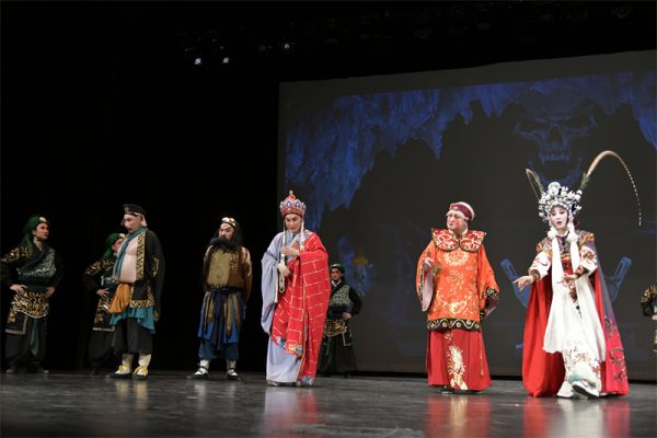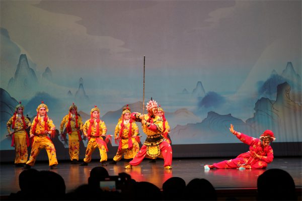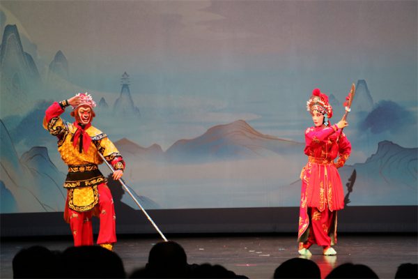 晚上7:30,伴随板胡与横笛独特的前奏声,“现本相,朽骨一丘……” “白骨精”一声响亮的开嗓,全本经典婺剧大戏《三打白骨精》准时开演。这是由浙江婺剧艺术研究院(浙江婺剧团院)陈美兰新剧目创作团队精心打造,中国国家一级编剧姜朝皋担任编剧,国家一级导演翁国生担任导演,“梅花奖”得主杨霞云,国家二级演员周宏伟等一批优秀青年演员担纲主演的走向世界并且火遍世界的一出戏曲节目,生动再现了《西游记》中的经典人物和情节,为多伦多的观众带来了一场充满传统魅力和现代艺术感的戏曲盛宴。
