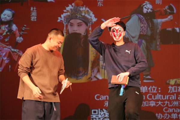 随后出场的是众目期待的张旭东老师,他是多伦多著名京剧老生表演艺术家,加拿大九洲艺术中心的会长,也是加拿大戏曲交流协会会长。他自幼在戏校受过严格的京剧专业训练,师从杨派。在国内常年与中国大型京剧院团合作演出,来加后,曾多次受邀参加多伦多当地华人的大型文艺节目以及加拿大政府、多伦多总领馆举办的庆典等大型活动。近10 年来,先后导演了十届 “欢乐春节” 戏曲晚会和海外戏曲春晚。在多伦多可谓是家喻户晓,他培养的很多戏曲艺术人才目前已活跃在多伦多的各大舞台。