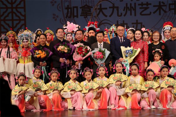 伴随着一曲经典的《明天会更好》,整场演出在充满温馨和希望的氛围中圆满落幕。演员们身着华丽的戏服,举手投足之间流露出一种与观众心灵相通的真诚。台下的观众不禁为之动容,久久不愿离去,全场一直回荡着经久不息的掌声,大家都感到意犹未尽。中国驻多伦多副总领事程洪波上台亲切慰问了远道而来的浙江婺剧院的团队领导和艺术家们及所有的演员,列治文山市市议员崔冰辉,以及多伦多各社团领袖上台与艺术家们及演员们亲切合影留念,大家都依依不舍,场面十分温暖、感人。