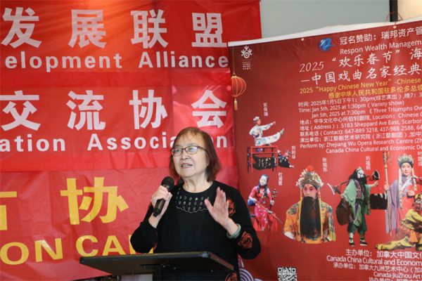 她说,“欢乐春节”海外戏曲春晚演出活动的目的就是为了丰富加拿大多元文化的发展,让侨居海外的华人华侨和加拿大各族裔的朋友们一道以戏会友,共享中华传统文化、共建和谐世界,共庆农历新年!加中文化经济发展联盟将一如既往的竭尽全力为增进和加强加中两国的传统友谊,促进加中文化艺术领域的广泛交流,推动和活跃加拿大多元文化的繁荣与发展做出应有的贡献。