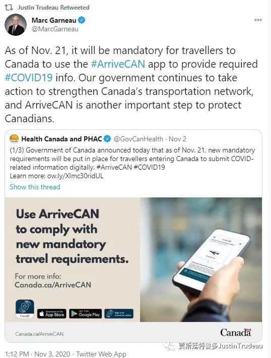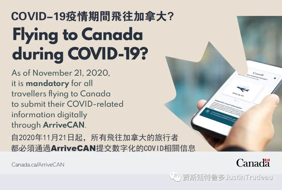 自11月21日起,所有飞往加拿大的旅行者必须使用“ArriveCAN”(抵达加拿大)应用程序提供所需的COVID-19信息。 我们政府继续采取行动加强加拿大的交通网络,而ArriveCAN是保护加拿大人民的又一重要步骤。