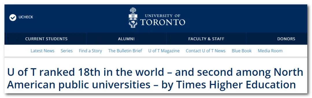 多伦多大学和去年一样,再次成为加拿大大学的榜首,也是唯一一所进入前20的大学。其中多伦多大学的最高排名是研究成果,在全世界排名第12位。