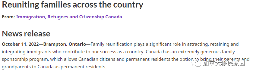 加拿大移民部长肖恩·弗雷泽表示,家庭团聚对于加拿大人非常重要,它在我们的移民体系中扮演着关键角色,政府也一直致力于加强家庭团聚。