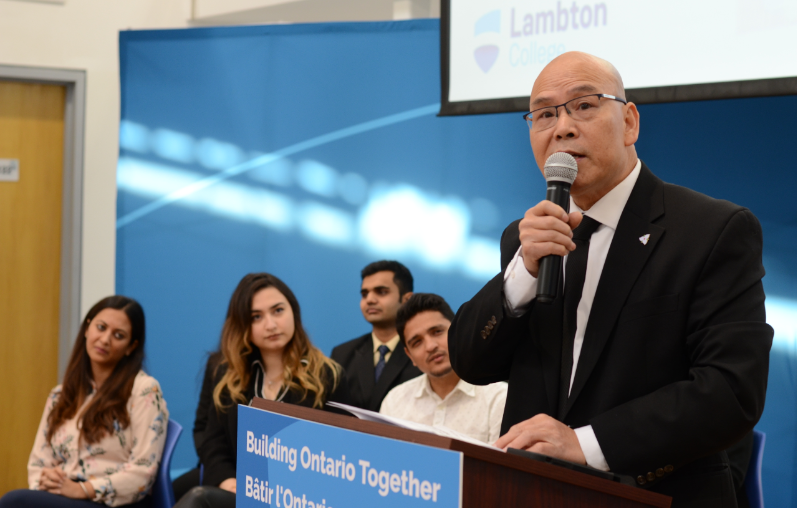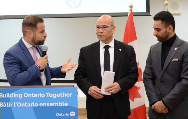 安省高等教育和技能发展厅长议会助理皮奇尼 ( David Piccini) 今天与当河谷北选区(Don Valley North)的省议员柯文彬(Vincent Ke)一起,在 Lambton in Toronto校园内谈及安省如何支持扩大提供公立大专院校与私立教育服务的合作。这些合作关系将帮助更多学生就 读安省的大专课程 , 为他们提供获得高薪职业所需的技能和培训 ,并满足安省现今和未 来的职位需求。
