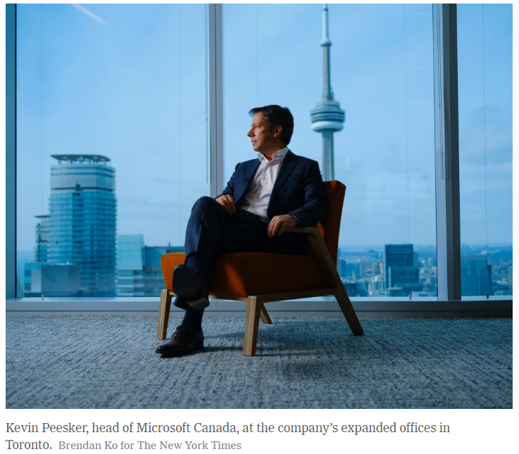 今年2月下旬,科技和软件巨头微软在多伦多市中心一栋 50 层高的玻璃大楼顶部开设了四层的新办公空间,距离枫叶队和猛龙队的主场 Scotiabank Arena只有一个街区。