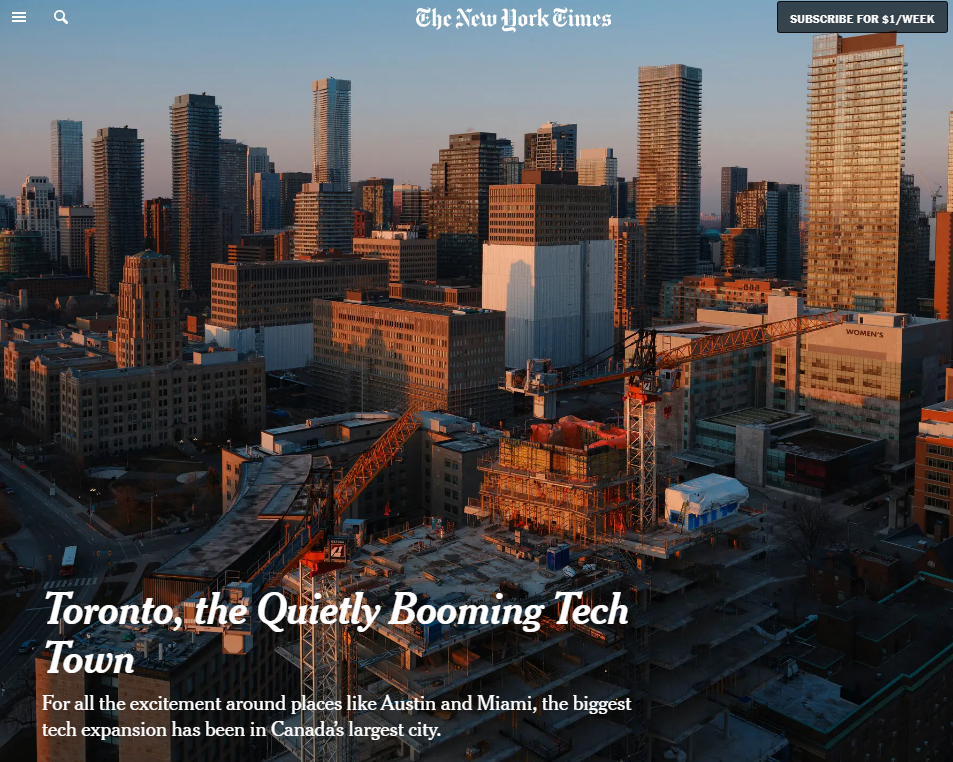 在《纽约时报》眼中,多伦多真是各种香饽饽:多元文化大熔炉,美食天堂,还出了很多超级巨星。日前,多伦多又被夸了。这一次,《纽约时报》把多伦多形容为:悄悄崛起的北美第3大科技村!不是奥斯丁,不是迈阿密,现在全世界最大的科技扩张发生在加拿大最大的城市——多伦多。