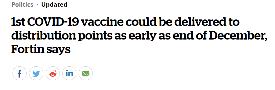 加拿大卫生部最早一周内批准疫苗,首批疫苗本月底就运抵