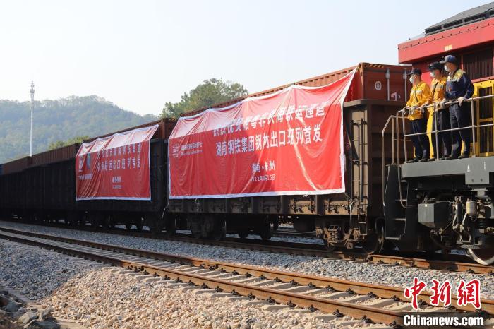 2022年10月15日,湖南开出首趟“铁海联运”钢材出口集装箱专列