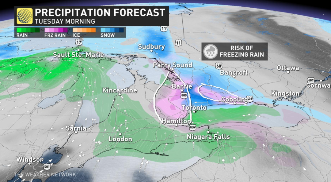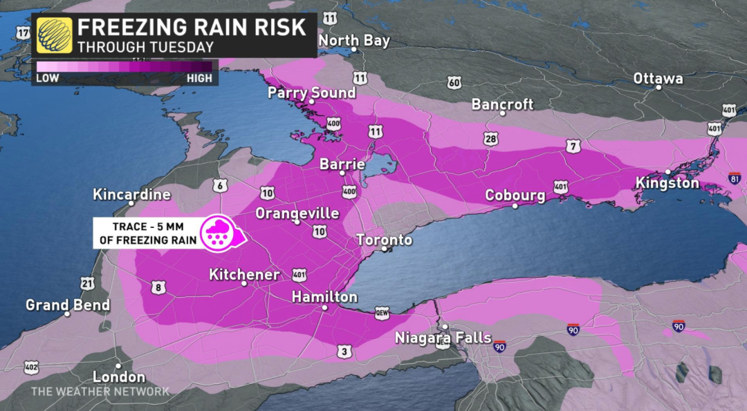 冰雨只是本周安省南部两个天气事件中的第一起。随着急流变得更加强大,一个更加活跃的风暴将进入五大湖,导致从周三晚些时候出现另一个低气压。