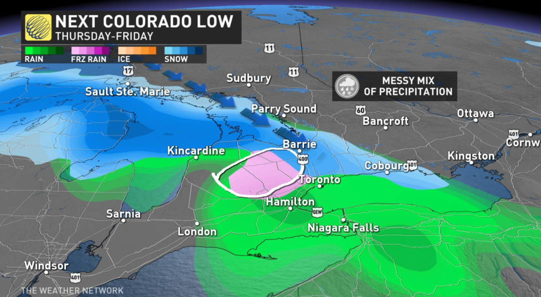 据悉,科罗拉多州的两个低气压中的第一个正在接近安省南部,可能会带来一场冰雨。
