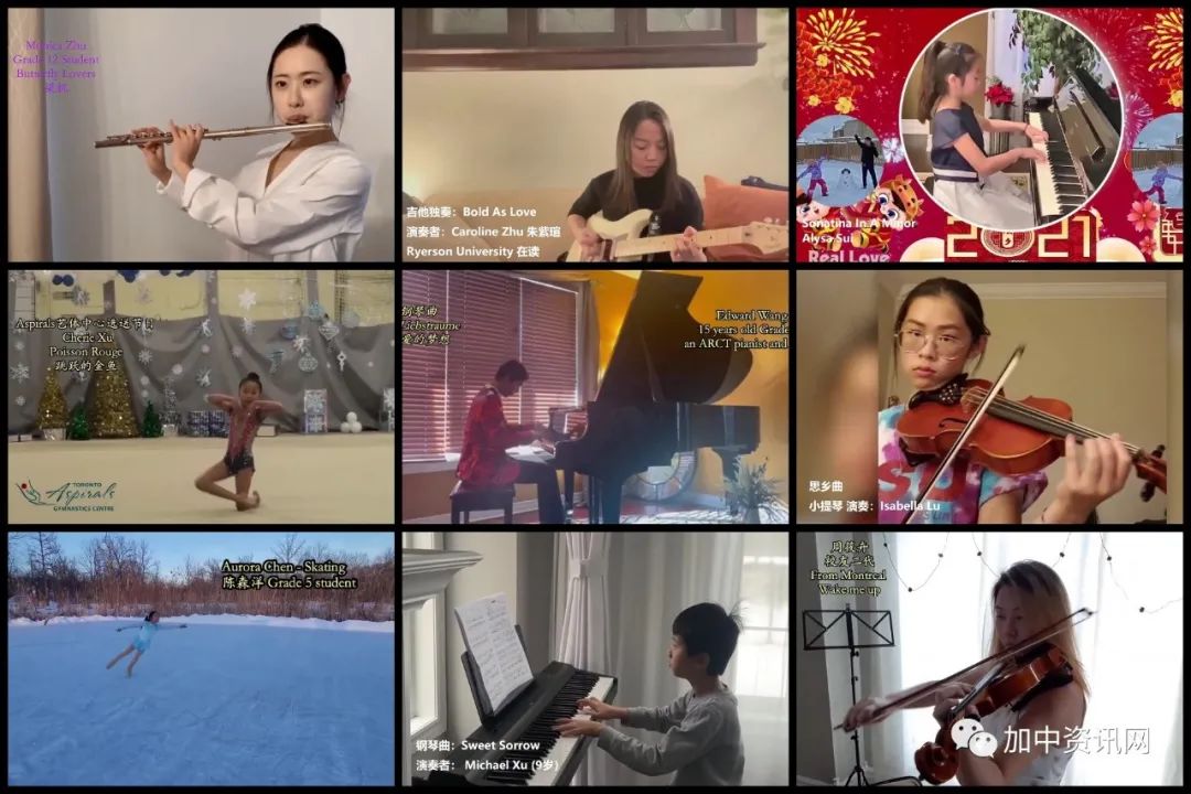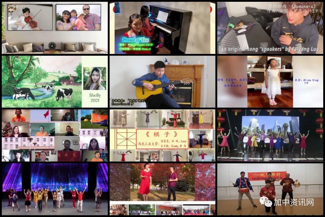 晚会不少节目由侨胞二代表演,内容丰富多彩。有传统的乐器、体操及舞蹈表演,现代流行的摇滚乐及花样滑冰,也有自编自导的家庭抗疫 “三部曲” 。