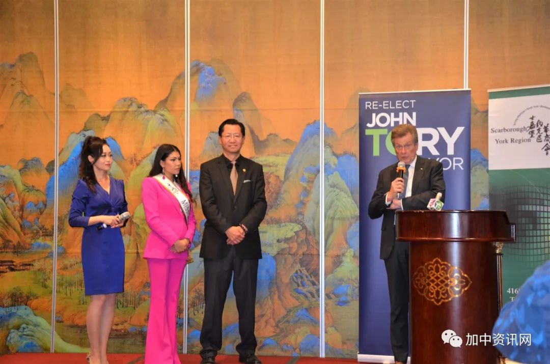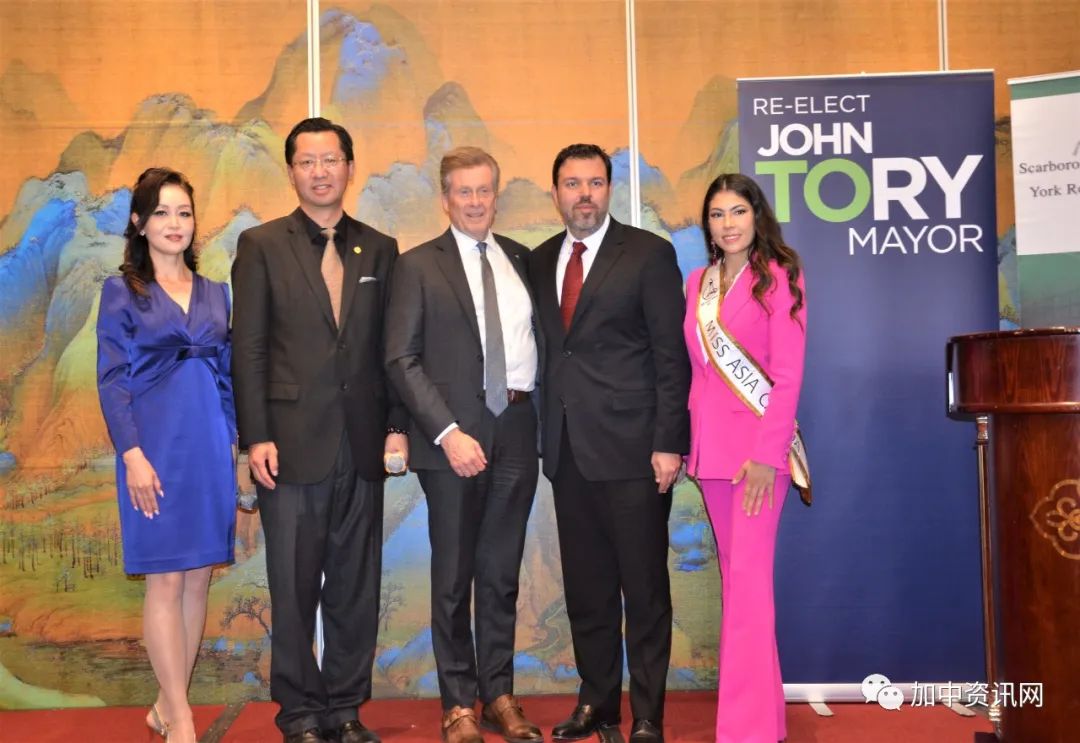 枫华传媒集团总裁 梁晓敏与多伦多市长候选人庄德利(John Tory)、市议员候选人万利高(Nick Mantas )合影
