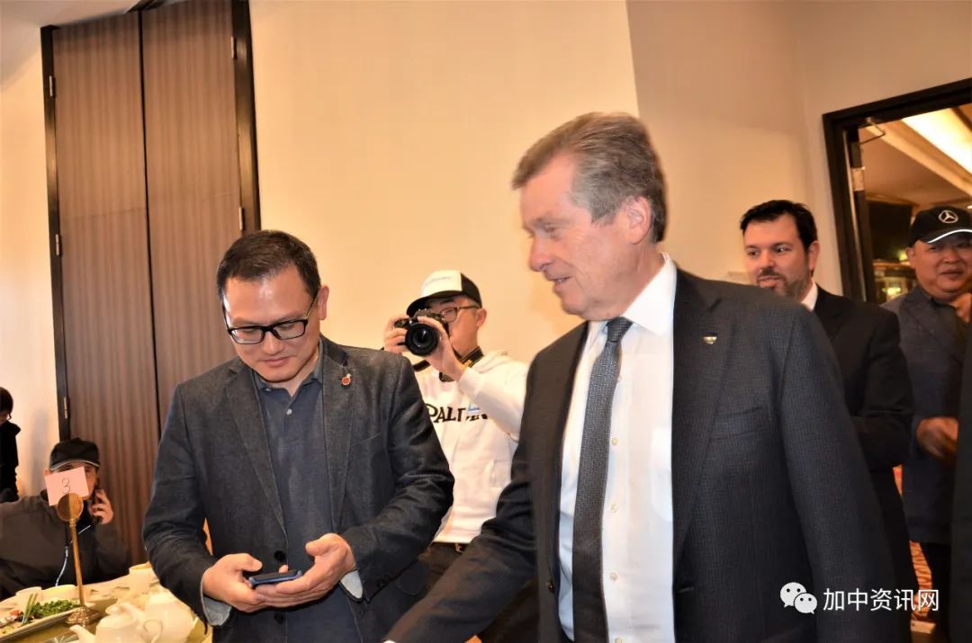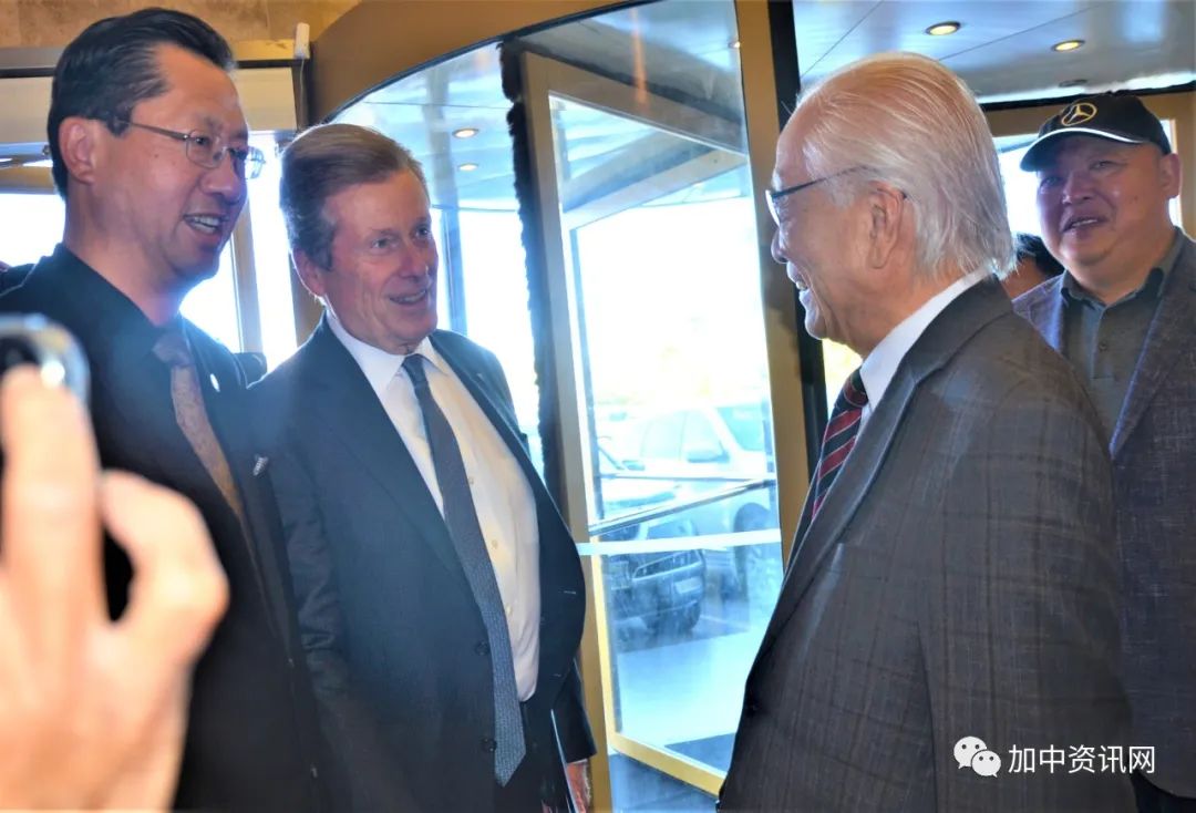 慕思家居VP Bruno Yan与多伦多市长候选人庄德利(John Tory)握手交谈