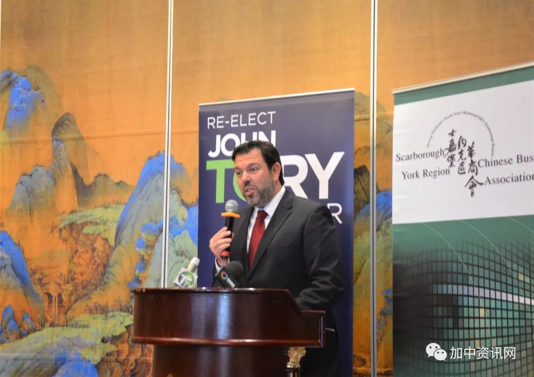 多伦多第22区(士嘉堡-爱静阁区)市议员候选人万利高在致辞时高度赞扬了士嘉堡约克区华商会为多伦多乃至加拿大社会的经贸文化发展做出的杰出贡献。他表示,如果他能连任市议员,将与商会更紧密合作,一起把士嘉堡-爱静阁区建设成为宜商、宜居及安全的地区。