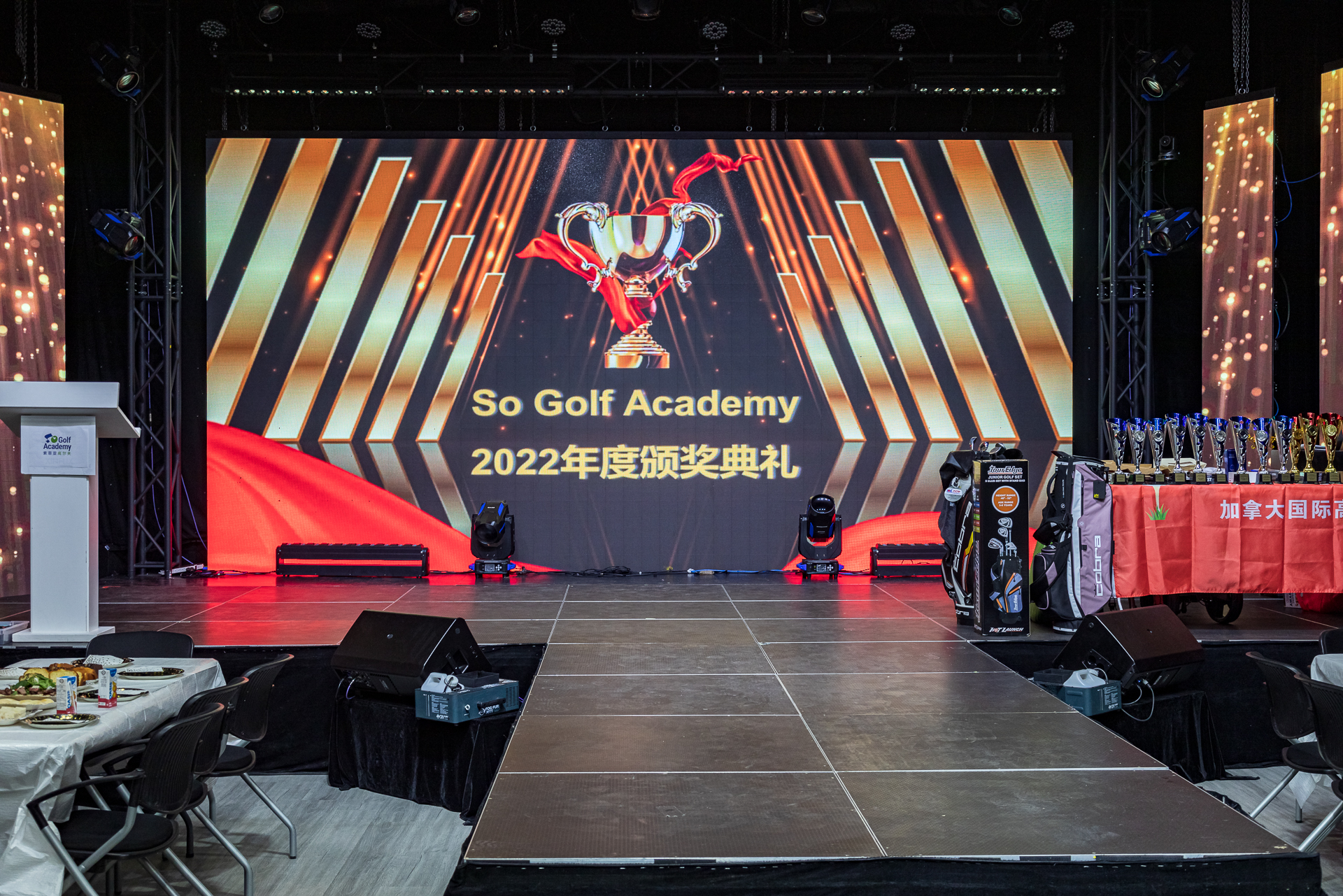 早春二月,万象更新,索菲亚高尔夫学院 (So Golf Academy) 于2月26日下午在万锦新动力传媒演艺中心成功举办2022年会暨颁奖典礼,索菲亚高尔夫学院的主要教练、优秀学员,赞助商等100多嘉宾出席了这一盛大年会,回顾索菲亚高尔夫学院五周年的光辉历程,给优秀教练和优秀学员颁发2022年度奖励,同时还有精彩表演节目和幸运抽奖。