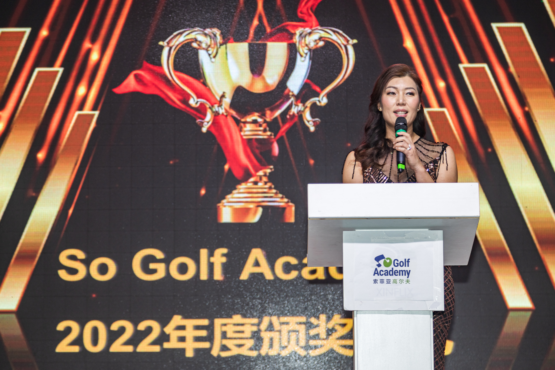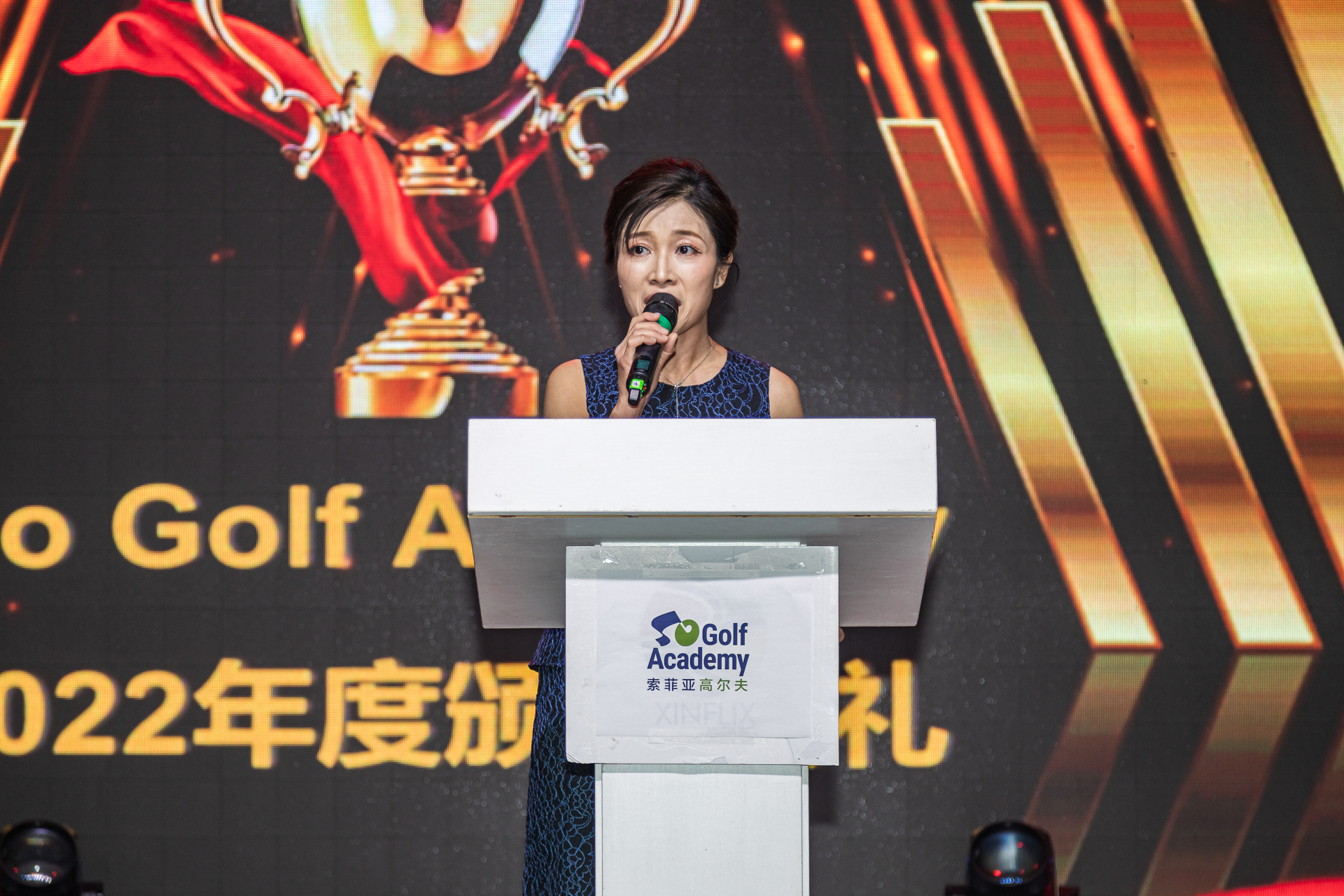 索菲亚高尔夫学院的创始人、院长Sophia Li首先做开场致辞,感谢大家在百忙中参加索菲亚高尔夫学院今天的年会和颁奖活动。