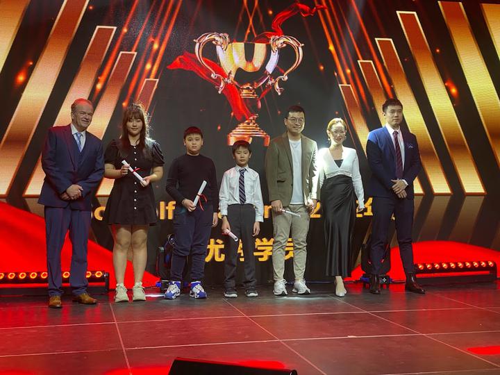 Jonathan和母亲上台领奖 Sophia Li 教练宣布将全力培养Jonathan