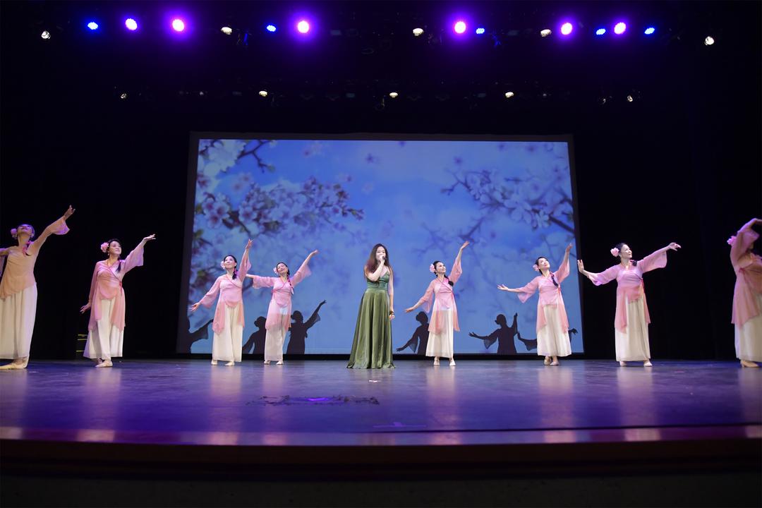 Mu Vocal Art Studio的张筱萌老师演唱黄梅戏《天女散花》,星帆艺术中心伴舞,仙气飘飘,歌韵美妙。马春玲与张文秀联袂深情献上京剧《赤桑镇对唱》,生动鲜活,戏旗组伴舞助阵。著名女高音岳新带来评剧《报花名》,唱作清新生动,歌声美妙,青衣组伴舞。罗歆瑶老师演唱古风歌舞《相思遥》,多伦多金梦艺术中心的小白、Nancy等伴舞,意境优美。