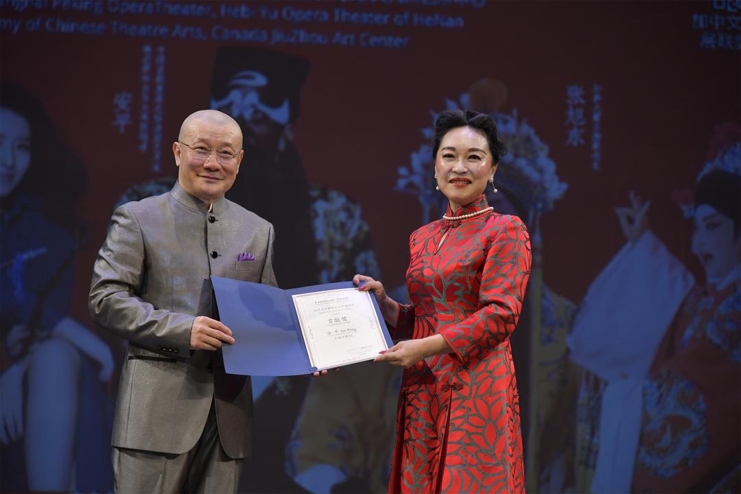向安平老师颁发"加中文化艺术交流非遗传𠄘贡献奖"