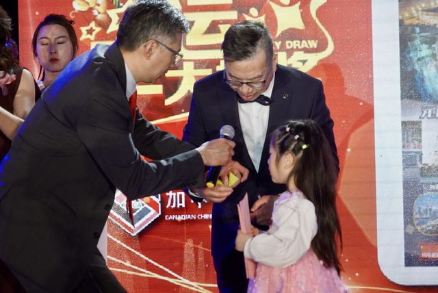 除了庄重的典礼环节,活动还设有多轮抽奖与丰富文艺节目。至尊假期共提供60套顶级江南双人游,每套价值600加元,由Jason Pu、Raymond Wan、Winson Lin、Iris Hon Zhu等人分轮抽奖,中奖嘉宾欢呼声此起彼伏。Air Tree、美的家电、Furnish & Co.、Driven Fasteners、长城玻璃、宏博留学移民中心、RE/MAX、Luxe Stone、Future Appliances等企业提供多种高端奖品,包括岩板、家电、球票、旅行箱、冲凉门及高端厨电产品等,抽奖气氛热烈,高潮迭起。