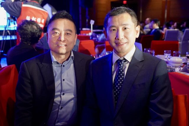 “企业进步大奖”由中国工商银行(加拿大)CEO陆辕(右)亲自颁发,获奖企业为Besso特亿建材,领奖人是其代表Justin Zeng。