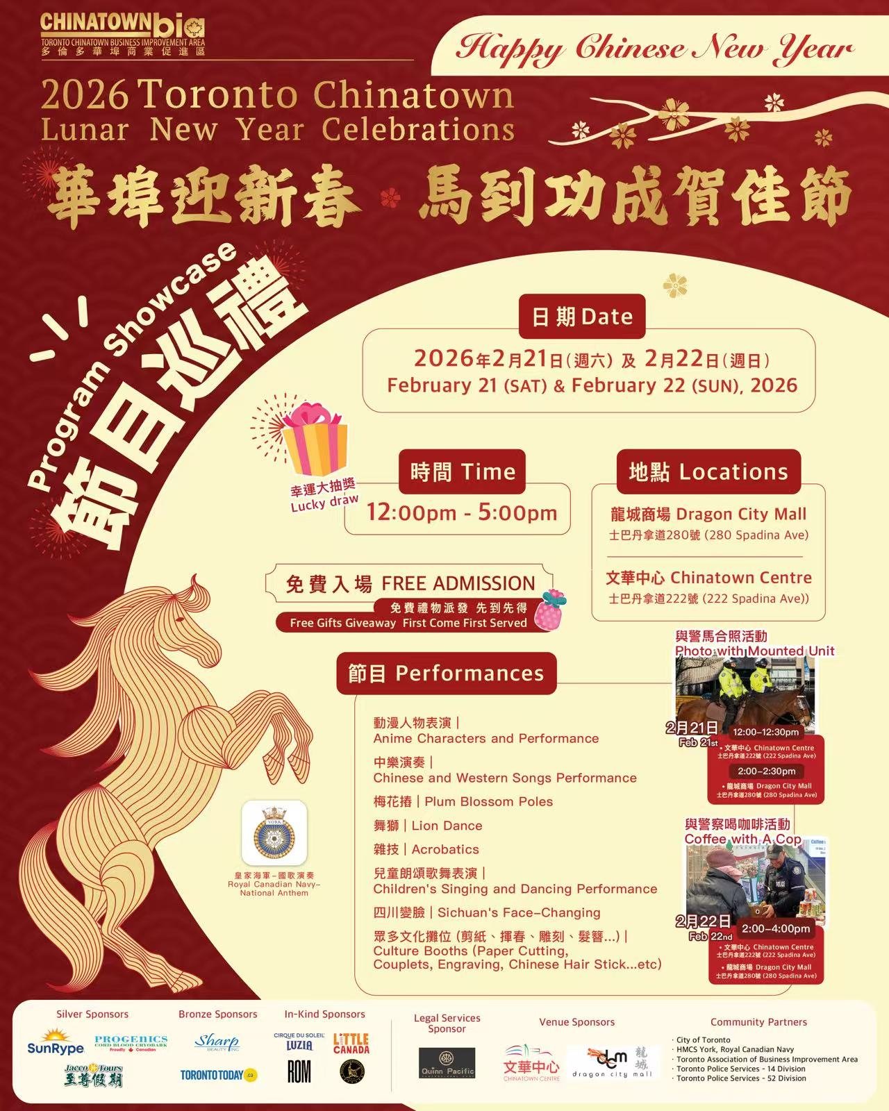 精彩庆典、节日氛围与浓厚年味,将让整个华埠焕发新春活力。带上家人朋友,一同走进多伦多最热闹的农历新年庆祝现场,共享喜庆与祝福!