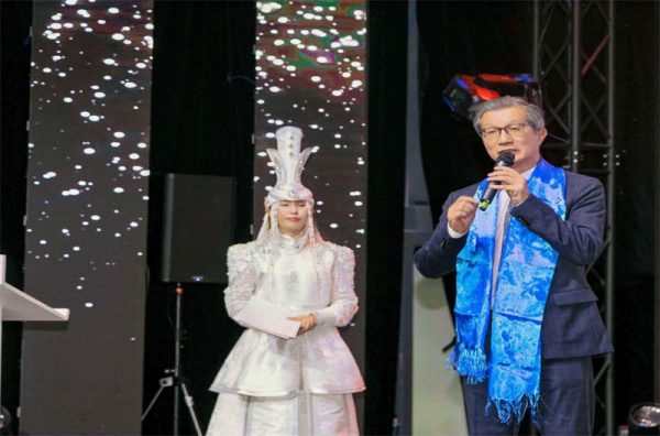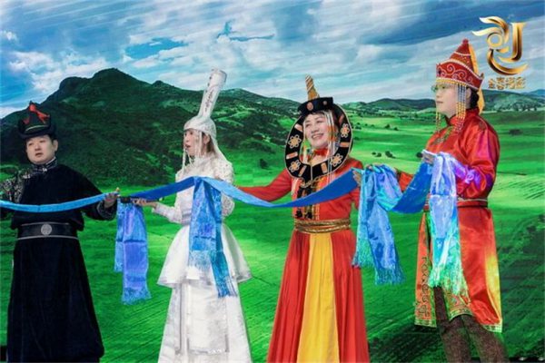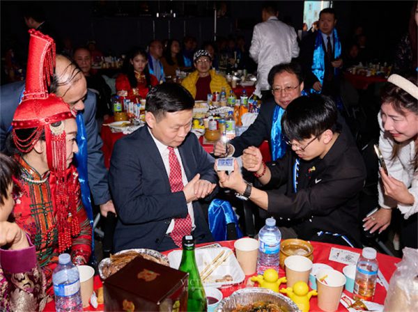 协会举行了富有蒙古族传统特色的敬献哈达仪式。在蒙古族的礼仪中,敬献哈达象征着对客人最崇高的敬意与祝福,Sophia 会长、张岩副会长为今晚到场的所有嘉宾敬献蓝色的哈达。