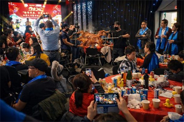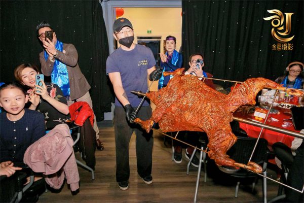 紧接着,两只共重80磅,外焦里嫩,香气四溢的传统内蒙古烤全羊被隆重抬进会场,惊艳了全场!欢呼声四起。