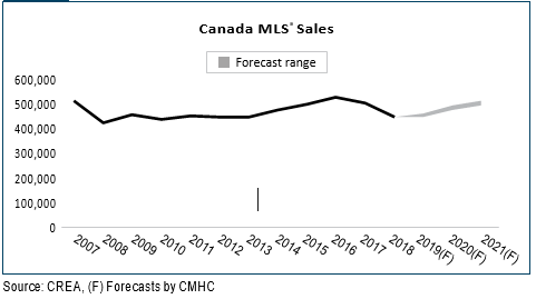 “从2017年地产市场高位之后,进行了为期两年的调整,到2020和2021年,新房开工将趋于稳定并与长期平均数值持平;同时受不断增长的人口数量和家庭收入的利好鼓励,二手房买卖和房屋价格据预测将一改近两年的颓势而全面复苏上涨。”CMHC的首席经济学家Bob Dugan说。