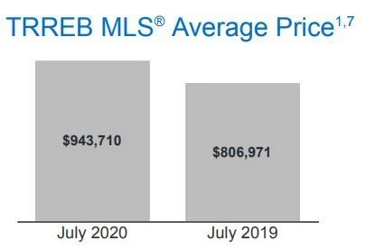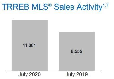 多伦多地产委员会主席丽莎·帕特尔(Lisa Patel)宣布,2020年7月通过MLS系统销售的房屋为11,081套,与2019年7月的8,555套相比,销量破万同比增加了29.5%,创下了7月份销量的新纪录。