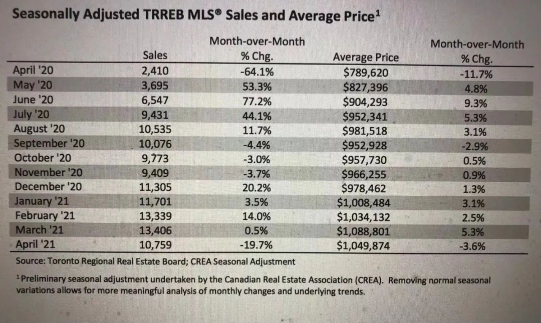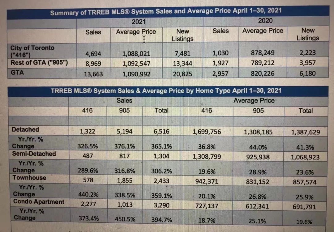 多伦多地产局4月地产报告出炉,大多伦多地区4月份房市持续火热,但由于成交价与销售总量均较之前1个月下跌,可见经过2021年第一季度3个月创历史记录的报复性反弹,多伦多房市回归正常轨道。
