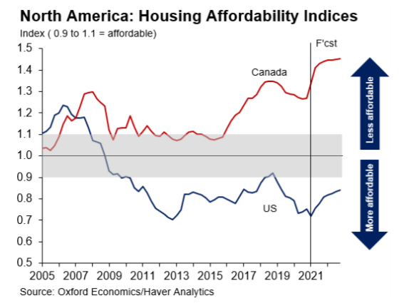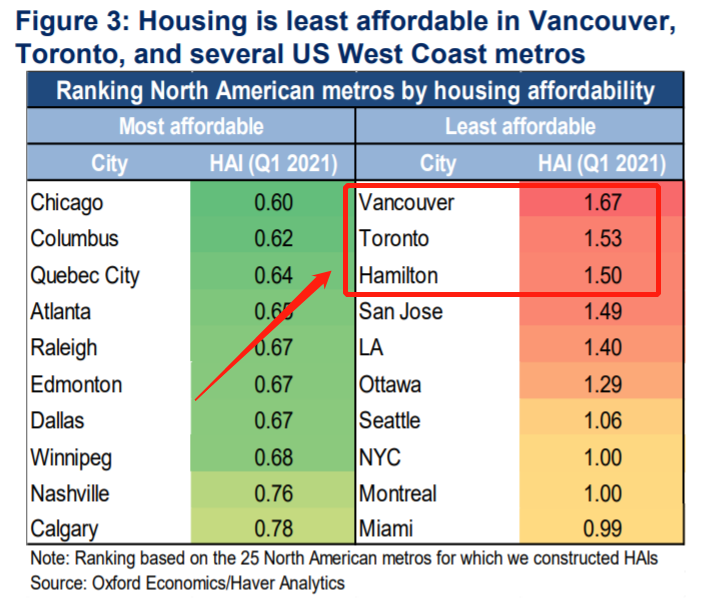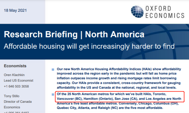 这份由Oxford Economics于5月18日发布的报告,探讨了北美最容易和最难负担房价的城市。