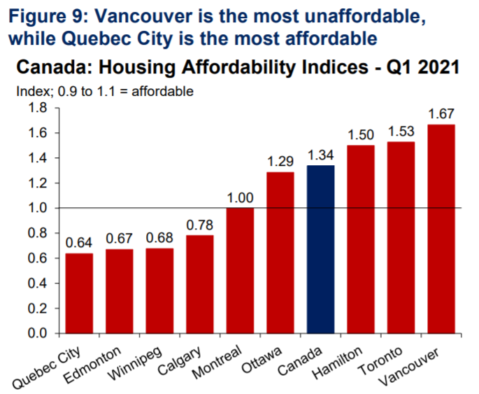 加中资讯网2021年5月23日讯,最近一份由Oxford Economics于5月18日发布的最新报告显示:加拿大温哥华、多伦多和汉密尔顿现在已经超越美国纽约和洛杉矶,成为北美房价最难负担的城市。