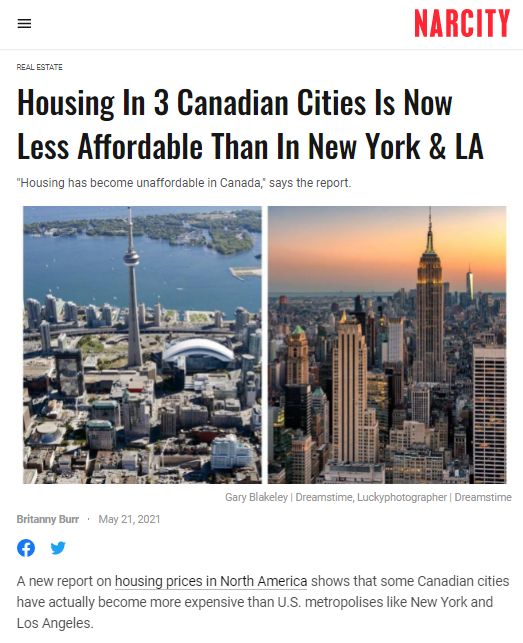 据Narcity报道,一份关于北美房价的最新报告显示,加拿大的一些城市实际上已经变得比纽约和洛杉矶等美国大城市更贵。