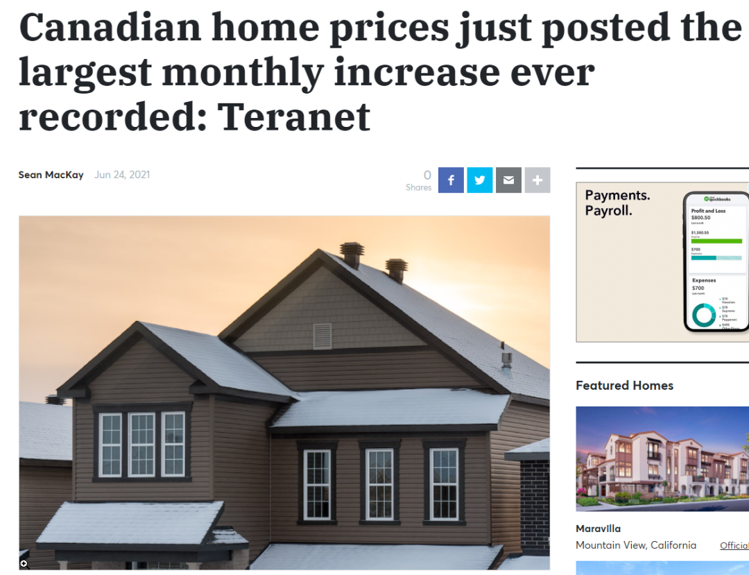 加拿大5月房价创下有史以来最大月度涨幅;随着房地产繁荣肆虐,