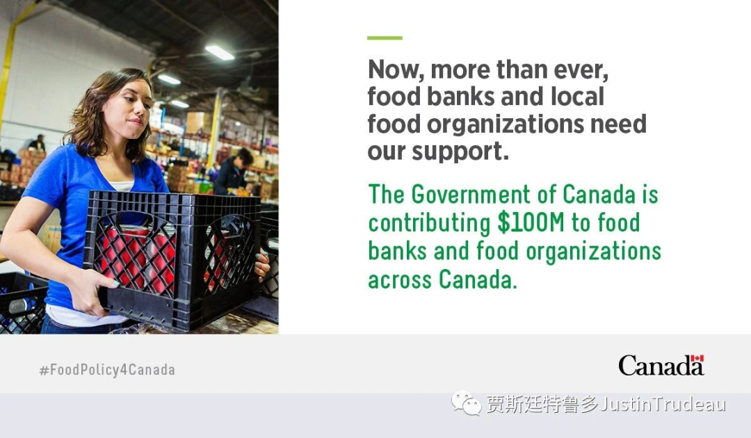 贾斯廷•特鲁多(Justin Trudeau)总理今天宣布投资1亿加元,改善加拿大人获得食物供应的状况,帮助他们应对COVID-19疾病大流行的社会、经济和健康影响。