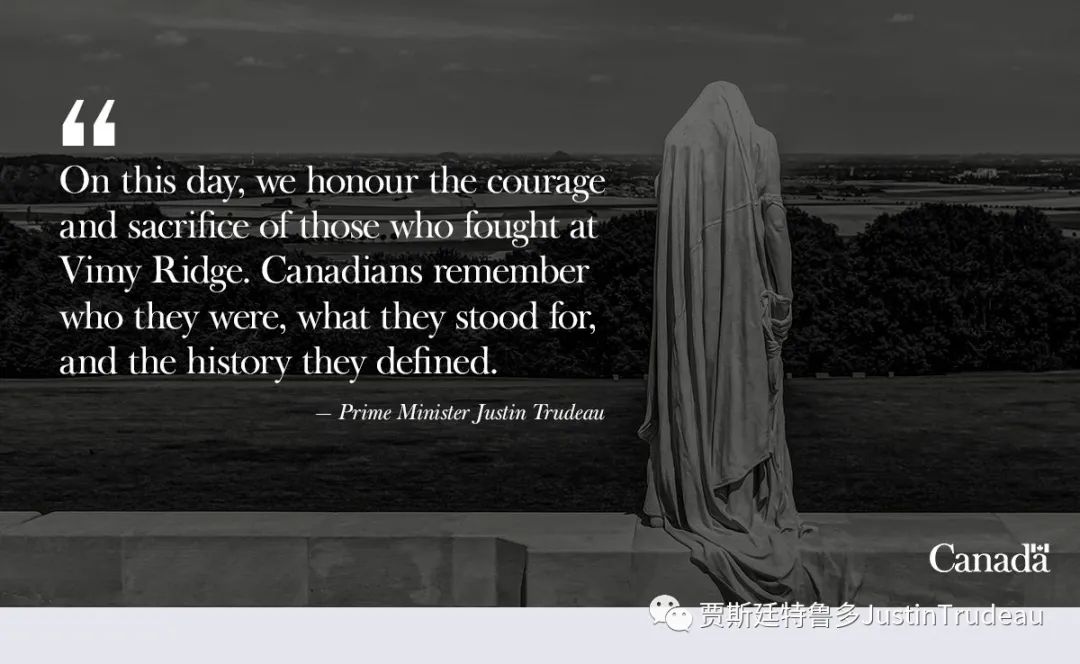 只要回想一下1917年的复活节星期一,回想来自全加拿大的数千名战士,冲过冰冷的雨雪和泥泞,冲向维米岭的高地,冒着敌人的枪林弹雨,捍卫我们珍惜的价值。